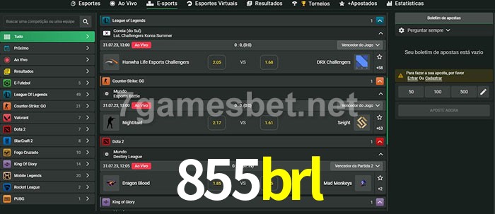 O 855brl oferece uma grande seleção de opções de apostas em e-sports com probabilidades competitivas